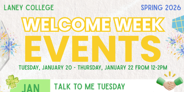 Laney College Spring 2026 Welcome Week, 1/20 - 1/22