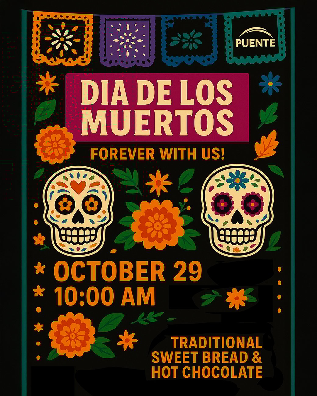 For over 20 years, Merritt has honored this beautiful tradition — a time to remember and celebrate our loved ones who have passed. Join the Puente Project for music, danza, remembrance, and community.